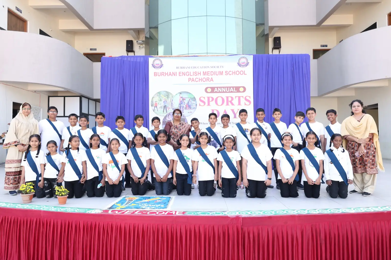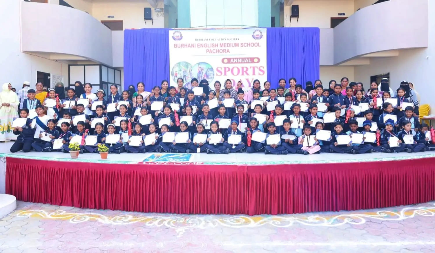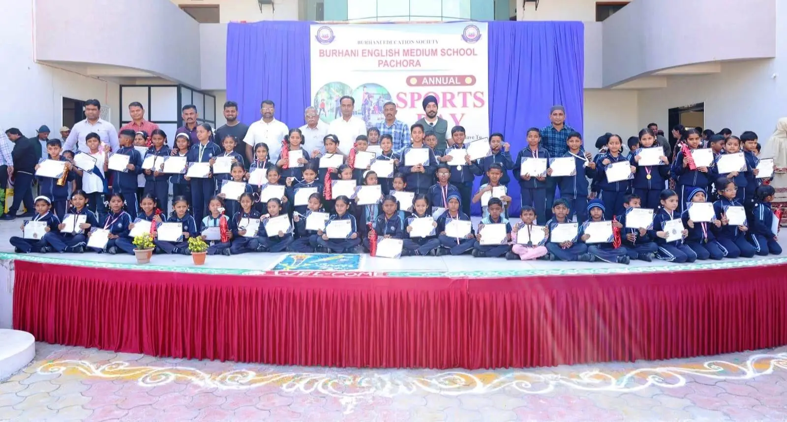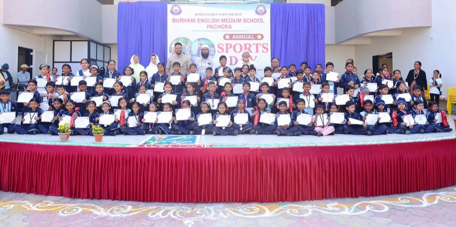 पाचोरा येथील बुरहाणी इंग्लिश मिडियम स्कूल (न्यू बिल्डिंग) येथे दिनांक ८ डिसेंबर २०२५ ते १३ डिसेंबर २०२५ या कालावधीत वार्षिक क्रिडा दिनाचे आयोजन करण्यात आले होते. या क्रिडा महोत्सवात विविध स्पर्धांचे आयोजन करण्यात येऊन अंतिम फेरीतील खेळाडूंची निवड करण्यात आली होती. त्या विजेत्या व उपविजेत्या विद्यार्थ्यांचा आज पारितोषिक वितरण समारंभ उत्साहात पार पडला.